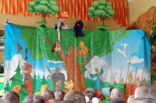 Бүген бакчабызга Түбән Кама шәһәреннән кунаклар килде. Алар үзләре белән бик күңелле театр алып килде. Бу театр аша балалар "ялкаулык - хурлык, тырышлык - зурлык" дигән мәкальнең мәгнәсенә төшенделәр.