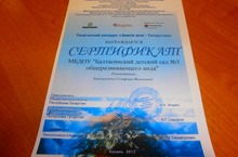 Ташландык материаллар кулланып ясаган фигуралар белән "Минем илем - Татарстан" дип исемләнгән конкурста катнашып сертификатка ия булдык.