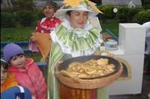 Бүген бакчабызда бик матур көз бәйрәме үтте. Бәйрәмгә балаларны котлап, үзенең пиче белән әкият герое - Емеля да килде. Ул балаларны пичтән чыккак тәмле, кайнар коймак белән сыйлады.