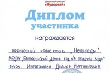 Воспитанница детского сада Закирова Залина получила диплом лауреата 3 степени за участие в муниципальном этапе конкурса удмуртской культуры "Мудорвай". Поздравляем!!!