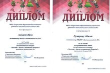 Воспитанники детского сада участвовали в муныципальном этапе республиканского конкурса экологических рисунков в рамках 30 летия образования Министерства окружающей среды и природных ресурсов РТ. Зиатдинова Зарина занята II место в номинации "Охраняемые растения и животные", Исмагилова Фируза заняла III место в номинации "Будущее планеты", награждены дипломами МКУ "Управление образования" Балтасинского районного исполнительного комитета.