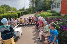 Балалар дару үләннәренең файдасы белән танышуны дәвам итәләр, бакчабызда үскән чәчәкләр, агачлар һәм куаклар белән сокланалар. Дети продолжают знакомство с лекарственными растениями, любуются цветами, деревьями и кустами, которые растут на участке детского сада 28.07.2021