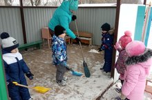 Уртанчылар төркеме балаларына прогулкада хезмәт тәрбиясе бирелә.