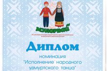 Воспитанники нашего детского сада были награждены Дипломом в номинации "Исполнение народного удмуртского танца" за участие в республиканском конкурсе "Мудорвай".Республикакүләм "Мудорвай" конкурсында катнашып балалар бакчасының бию коллективы Диплом белән бүләкләнде.