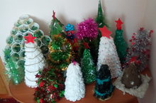 В детском саду проходит акция "Елочка,живи!". Дети совместно с родителями делают ёлочки из бросового материала.
