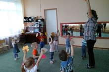 Беренче кечкенәләр төркемендә музыка шөгыле бик куңелле уза. Балалар җырларга, биергә өйрәнәләр. Яфраклар белән биюне дә алар бик теләп кабул иттеләр.