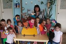 II кечкенәләр төркемендә балалар кул курчаклары киеп театр уйнарга яраталар. Әкият гаройлары булып сөйләшү балаларның сөйләм телен үстерергә ярдәм итә.