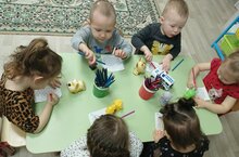 Икенче кече яшьтәгеләр төркемендә гадәти булмаган рәсем буядык. Балалар карандашны дөрес тотарга, тигез, шома буярга өйрәнәләр. Төсләрне ныгыталар, сөйләм телләрен баеталар. Балаларга мондый рәсемләү ошый./ Во второй группе раннего возраста рисовали необычный рисунок. Дети учатся правильно держать карандаш, рисовать ровно и гладко. Усиливают цвета, обогащают разговорный язык. Детям нравится такая живопись.