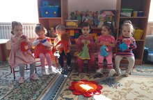 Уртанчылар төркеме балалары белән музыка эшчәнлеклэре көз темасына җырлар, биюләр , уеннар белән үрелеп бара.Табигатьтәге үзгәрешләр, хайваннар тормышы, бакчада өлгергән җиләк җимешләр турында шөгыльләрдә алган белемнәрен музыка өлкәсендә ныгыталар.Төрле предметлар белән биюләр,хәрәкәтләрне яратып башкаралар./ Занятия по музыке в средней группе проходит на осеннюю тему.Знания которые получили на других занятиях :изменения в природе,в жизни животных, растений,об урожае закрепляются на уроках музыки.