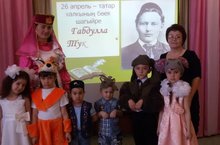 Бүген безнең бакчада "Тукай абый әкиятләре буйлап" дигән әдәби кичә булды. Г.Тукайның тормыш юлы, әкиятләрен, шигырьләрен искә төшерү балаларны тагын да илхамландырды