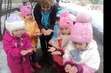 Прогулка вакытында уртанчылар төркеме балалары , күзәтүне язның беренче билгеләрен тасвирлаучы бөреләр уянуын күзәтүдән башлады. Нәни бәби кебек кат -кат төренеп яткан бөре, язга уяна башлаган, "Әнә бит ямь- яшел булып күренеп тора - тиздән ул чын яфрак булачак" - ди тәрбияче апалары Эльвира Садиковна.