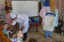 Мәктәпкә хәзерлек төркеме балалары район үзәк китапханәсендә кунакта булдылар. КИТАПХАНӘЧЕ АПАЛАР "Аю бабай" дип исемләнгән әкият -тамаша күрсәттеләр. Балалар табышмаклар чиштеләр, төрле әкиятләргә багышланган сорауларга җаваплар таптылар. Китап уку серләренә өйрәнделәр.