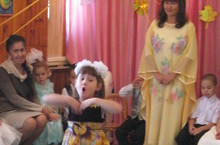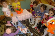"Уйный- уйный өйрәнәбез" 17.09.2013 2 нче кечкенәләр төркеме балалары "Гаилә" уен почмагында бишек җырлары көйлиләр.