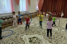 Җәйге чорда да төркемнэрдэ физик тәрбия буенча эш дәвам итә.Кечкенэлэр төркемендэ физкультура эшчәнлегендә балалар предметлар белән төрле күнегүләр эшлиләр./ И в летнее время продолжаются занятия по физкультуре.Дети младшей группы любят играть разными предметами на физкультурных занятиях.