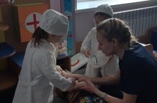 Кечкенәләр төркемендә “Ашыгыч ярдәм” уены үткәрелде.Балалар иптәшенә кайгырту, кызгану һисләрен белдерергә өйрәнделәр, шәфкать туташы ярдәме белән кулларыннан килгән ярдәмне күрсәтергә тырыштылар . / Познавательная игра «Скорая помощь», проведённая в ознакомительных целях для детей младшей группы. Дети учатся проявлять свое сочувствие, сопереживание к больному, оказывают посильную помощь благодаря урокам медицинской сестры.
