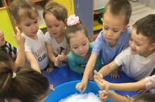 Бүген кечкенәләр төркеменә кунакка Кар кызы килде. Ул, балаларның табигатьтәге сезонлы үзгәрешләр турында күзаллауларын үстерде: кар җылыда эри һәм су була, ә суыкта су боз булып ката. Кар кызы балаларның танып белү сәләтләрен, күзәтүчәнлекне һәм кызыксынучанлыкларын үстерде./ Сегодня, к детям младшей группы, в гости пришла Снегурочка. Она развивала представления детей о сезонных изменениях в природе, учила устанавливать элементарные причинно- следственные связи: снег в тепле тает и превращается в воду, на морозе вода замерзает и превращается в лёд. Развивала познавательные интересы, наблюдательность и любознательность.