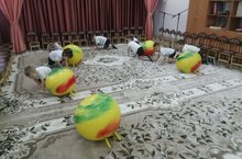 Уртанчылар төркеме балалары уен формасында ритмик көй астында төрле фитбол-туп хәрәкәтләрен башкару сәләтен үзләштерәләр, фитбол – туп белән хәрәкәтле уеннар уйныйлар./ Дети средней группы в игровой форме осваивают умение выполнять различные движения на фитбол - мяче под ритмическую музыку, играют в подвижные игры с фитбол- мячом. Использование фитбол- мячей повысила эмоциональную включенность детей в занятие