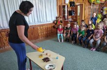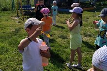 Балалар бакчасында Нептун көне узды. Тамашада балалар белән бергә Нептут һәм Русалка катнаштылар. Балалар диңгезләр һәм океаннар падишаһы Нептун белән бергә җырлар җырладылар, биеделәр. Бәйрәм барышында төрле уенныр уйнадылар: «Балык тоту»,"Кояш һәм яңгыр", «Русалканың төймәләрен җыю», «Сабын куыкларын очыру», «Су ташу».Тамаша балаларга бик ошады./День Нептуна в детском саду – это праздник лета, воды и веселья.