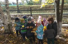 Дети, второй группы раннего возраста, на прогулке наблюдали за осенними листьями,