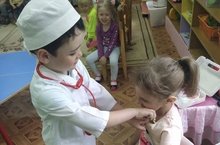 Уртанчылар төркеме балалары сюжетлы-рольле уеннарны бик яратып уйныйлар. / Дети средней группы любят играть сюжетно-ролевые игры.