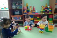 Беренче һәм икенче кече яшьтәге балалар төркемендә төсләрне аерырга ,кечкенә уенчыкларны уз урынарына дөрес кертеп чыгарырга өйрәнәләр./ Дети второй группы раннего возраста играют в режимные моменты игры по сенсорике .