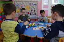 Зурлар төркемендә балалар режим вакытларында математика эшчәнлегендә алган белемнәрен уеннар аша ныгыталар./Дети старшей группы в режимные моменты закрепляют знания по математике.