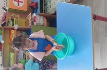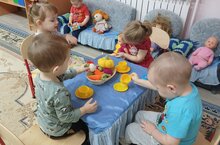 Барлык уеннар арасында сюжетлы-рольле уен аерым урын алып тора. «Гаилә» уенының максаты-балаларны уенда гаилә көнкүрешен иҗади рәвештә кабатларга этәрү. Без олылар балаларга яшьтәшләре белән элемтәгә керергә, шәхси симпатия нигезендә кечкенә төркемнәргә берләшергә булышабыз./Среди всех игр особое ведущее место занимает сюжетно-ролевая игра. Целью игры «Семья» является побуждение детей творчески воспроизводить в игре быт семьи. Мы взрослые помогаем малышам устанавливать контакт со сверстниками, на основе личных симпатий объединяться в маленькие подгруппы.