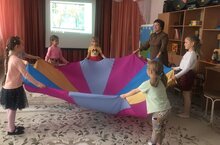 Бакчабызда үтүче музыка атналыгы кысаларында балалар белән төрле яңа музыкаль уеннар белән таныштык .Музыкаль парашют –коммуникатив уен,музыкаль ишетү, ритм тою,пронстранствода ориентлашу сәләтләрен үстерә ./ В нашем детском саду проходит неделя музыки.С детьми подготовительной группы познакомились с новыми музыкальными играми.Коммуникативная музыкальная игра «Музыкальный парашют» развивает способность работать в команде,развивает музыкальный слух,чувства ритма .