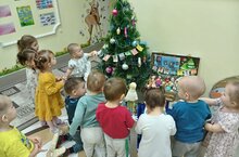 Икенче кече яшьтәге балалар төркеме белән танып белү шөгыльлендә бакчабызның әкияти почмагында кунакта булдык. Балалар бизәлгән чыршыны күзәттеләр, чемодандагы “Яңа ел уенчыклары” музеен карадылар. Чыршыга җыр җырладылар./ В ходе познавательных занятий со второй группой раннего возраста мы побывали в сказочном уголке нашего сада. Дети понаблюдали за украшенной елкой, посетили музей “новогодние игрушки” в чемоданах.