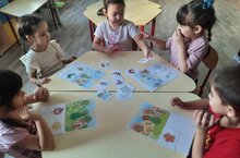 Бүген рус теле шөгылендә мәктәпкә әзерлек төркеме балалары белән урман җәнлекләре һәм йорт хайваннары, аларның балалары темаларын кабатлау һәм ныгыту максатыннан “Бу нәрсә баласы?” уены уйналды. Балалар зур кызыксыну белән тиешле картиналарны табып, аларны төркемнәргә аердылар. Уен барышында сүзлек запаслары баеды, хәтер һәм сөйләм телләре үстерелде./ Игра “Чей малыш?” познакомит детей с домашними и дикими животными и их детенышами. Сегодня на занятии русского языка с детьми подготовительной группы поиграли эту игру. Во время иры дети научились находить нужные картинки и распределять их по группам; развивали речь и память.