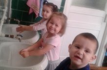 Тешләрем тазарсын./Сегодня дети младшей группы освоили гигиенические навыки и выучили потешку.