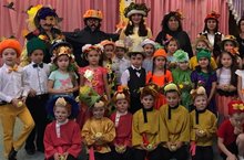 26 нчы октябрьдә уртанчылар төркемендә дә көз бәйрәме утте .Яшелчәләр, җиләк-җимешләр, гөмбәләр һәм гөмбә җыючы булып киенгән балалар Кояш белән Яңгырга җырладылар, биеделәр, шигырьләр сөйләделәр..Бәйрәмгә килгән Керпе белән Уңыш бабайга ярышлар вакытында җитезлекләрен күрсәттеләр./26 октября в средней , в старшей группе проводился праздник "Осень"