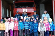 Мәктәпкә әзерлек төркеме янгын сүндерүчеләр оешмасында экскурсиядә.Биредә эшләүче хезмәткәрләр балаларга янгын куркынычсызлыгы кагыйдәләрен тагын бер кат исләренә төшерделәр.Балалар янгын сүндерүче машинаның төзелеше белән таныштылар ./Дети из подготовительной группы были в экскурсии в пожарной части