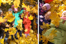 Мәктәпкә әзерлек төркеме балалары саф һавада яфрак коелганын күзәттеләр.Сары яфраклар белән шаярышып уйнадылар. На прогулке дети из подготовительной школы группы наблюдали осенним листопадом.
