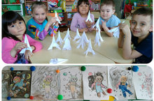 Уртанчылар һәм зурлар төркемендә "Кызыклы галәм" проекты кысаларында балалар галәм, космонавтлар, планеталар белән таныштылар. Рәсем, әвәләү, кисеп ябыштыру эшчәнлегендә космик ракета, спутник, космонавт ясадылар.