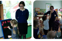Арча педагогия көллиятендә укучы Гильмуллина Фирүзә Хәлиловна бездә практика үтә. Булачак тәрбияче апа балалар белэн кызыклы эшчәнлекләр алып бара. Бүген ул балалар белән математика эшчәнлегендә.
