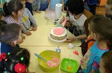Январь ае уртанчылар һәм зурлар төркемендә "Әти-әниләребезнең яраткан һөнәрләре" проекты бара . Бүген балалар янына төркемебезнең иң актив гаиләләренең берсеннән Гарипова Роза кунакка килде .Ул балаларга торт пешерү, кекс бизәү серләренә өйрәтте. Балалар бик кызыксынып оста белән бергэ кекс бизәделәр. Балаларыбызга онтылмаслык кичерешләр, осталык бүләк иткән олы йөрәкле әниебезгә зур рәхмәтебезне җиткерәбез.