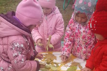 Бүген балалар көзге бизәкләр белән якыннан танышу максатыннан, табигать кочагында ял итте. Сабыйлар рәхәтләнеп матур-матур яфраклар җыйды, "сары" диңгездә йөзеп уйнады