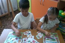 Играя в настольные, дидактические игры у детей развивается память, обогащается словарный запас. Сегодня Амир и Зиля «собирали» овощи и фрукты. Цель: учить правильно произносить звуки; совершенствовать грамматический строй речи, активизировать в речи слова, обозначающие признаки предмета. Воспитать умение слушать товарища.