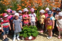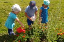 Нәниләрнең 2 нче төркеменә йөрүче балалар тәрбияче апалары белән чәчәкләрне күзәтәләр. Аларнын матурлыгына, төсләренә сокланалар.