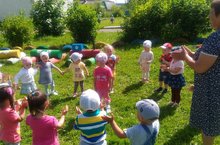 Нәниләр төркеменә йөрүче балалар җырлы-биюле түгәрәк уеннарны яратып уйныйлар.