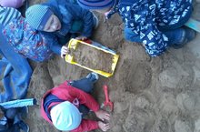 Зурлар төркемендә ком белән тәҗрибә үздырганнан соң балалар бик мавыгып дымлы комнан төрле корылмалар ясадылар. Коры һәм юеш комнын үзлекләрен тәҗрибәдә сынап карадылар