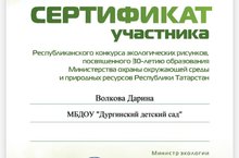 Волкова Даринаны катнашучы сертификатына ия булуы белән котлыйбыз!