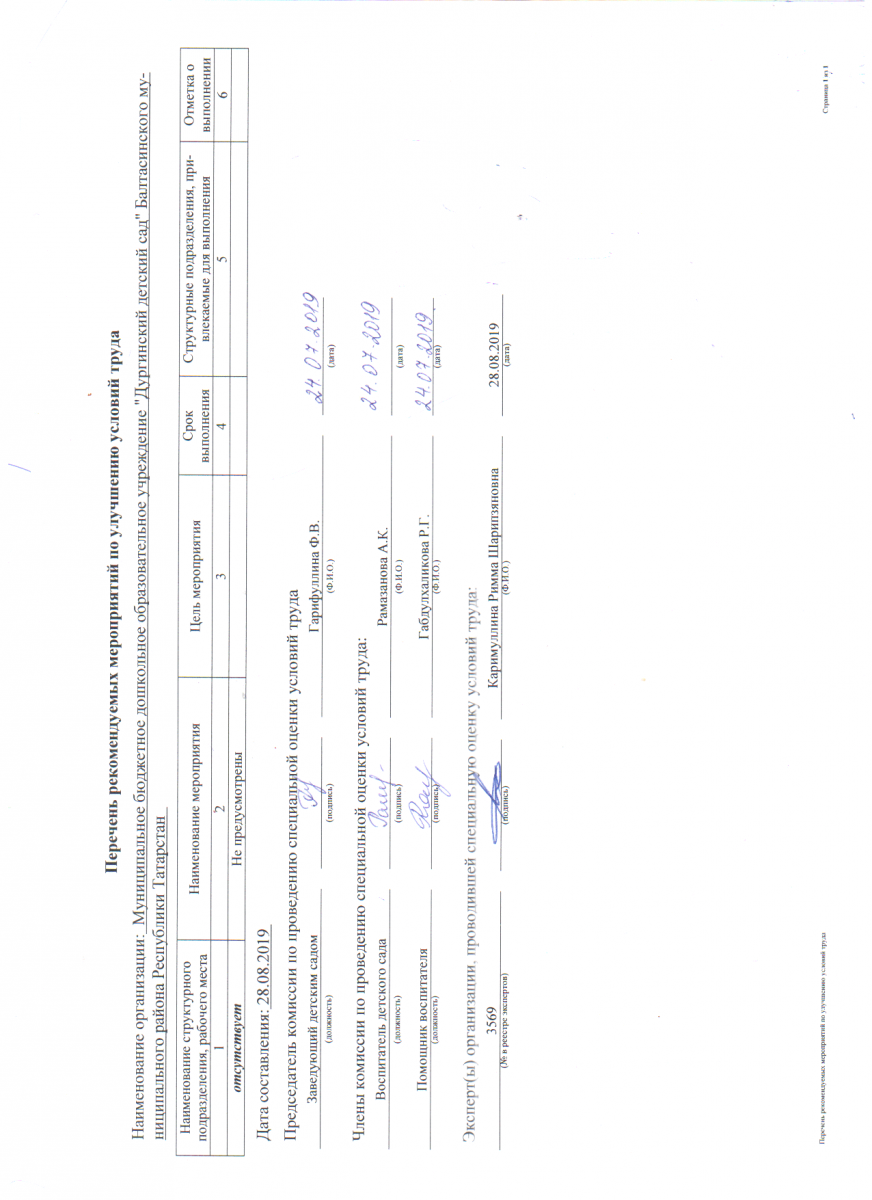 СПЕЦИАЛЬНАЯ ОЦЕНКА УСЛОВИЙ ТРУДА ЗА 2019 год
