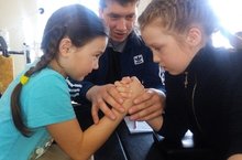 | У нас учат: | 20 учителей, 4 воспитателя, 1 совместитель/20 укытучы, 4 тәрбияче, 1 совместитель |