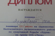 Район күләмендә ООО "Труд" призына 2002 елгы һәм аннан яшрәкләр арасында татарча көрәш ярышы булып узды. Әлеге ярышта мәктәбебезнең көрәшчеләр командасы катнашты һәм 3 урынны яуладылар.