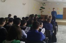Мәктәптә оборона-масса һәм спорт айлыгы кысаларында армия сафларында хезмәт итеп кайткан, мәктәбебезнең элекеге укучысы, Рәдиф Назипов белән очрашу уздырылды. Рәдиф укучыларга бүгенге кондә армия сафларында хезмәт итүнең әһәмияте турында сөйләде. "Физик әзерлегең көчле булса,армия хезмәтенең бер авырлыгы да юк"- ди ул. Очрашу ахырында укучыларны кызыксындырган сорауларга җаваплар бирде.