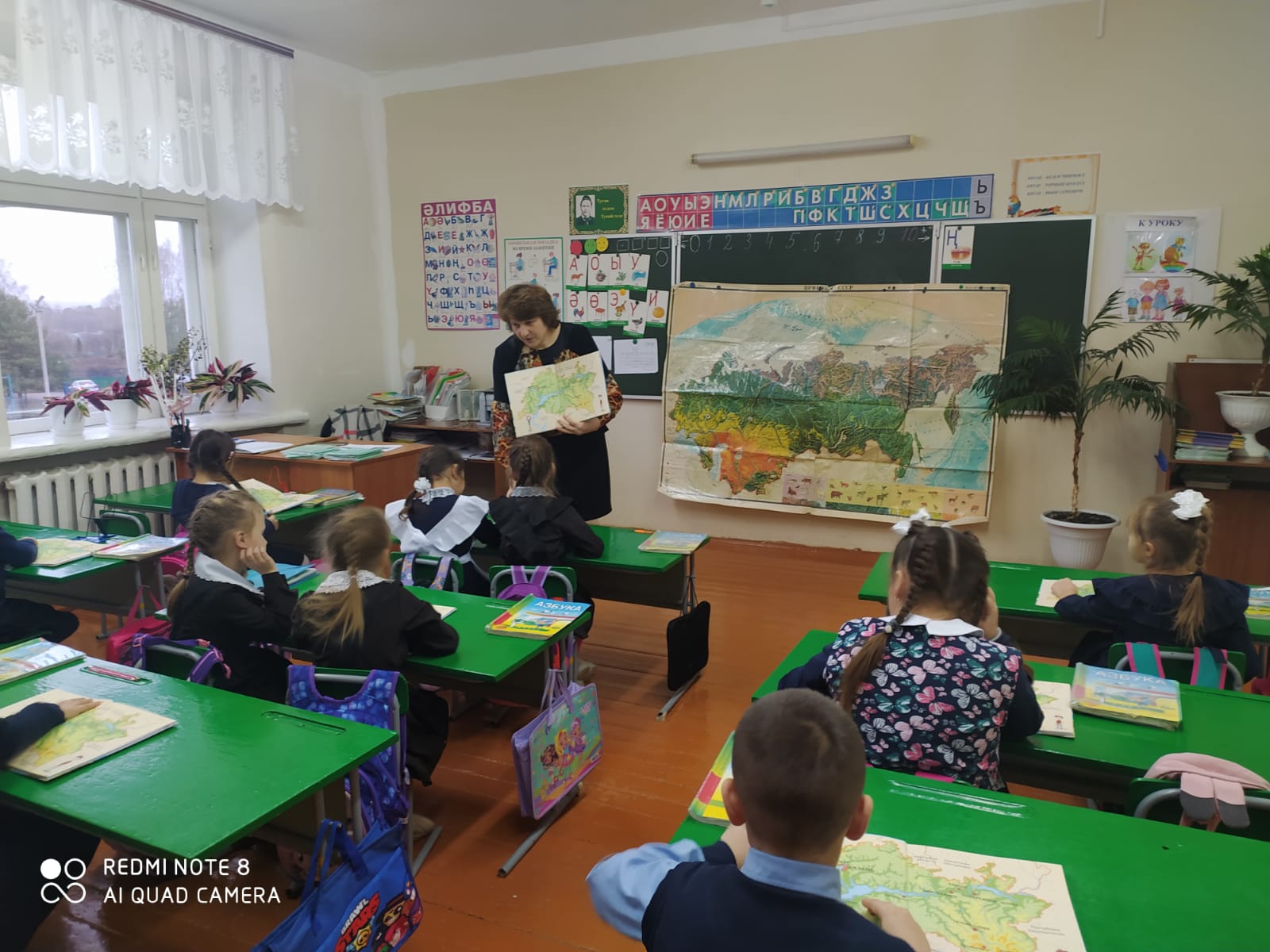 | У нас учат: | 20 учителей, 4 воспитателя, 1 совместитель/20 укытучы, 4 тәрбияче, 1 совместитель |
