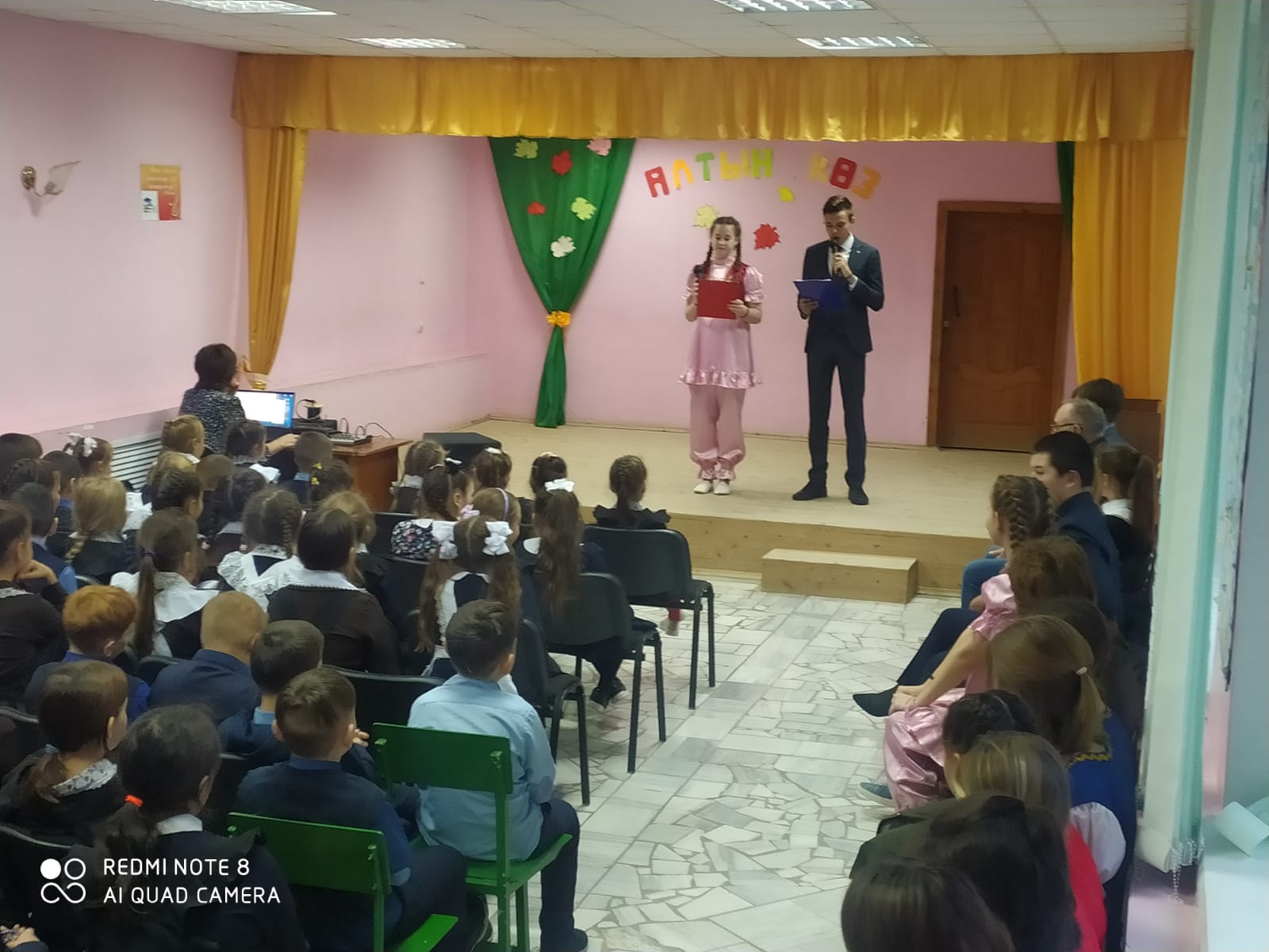 | У нас учат: | 20 учителей, 4 воспитателя, 1 совместитель/20 укытучы, 4 тәрбияче, 1 совместитель |