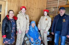Юнармиецлар җәмгыять җитәкчесе һәм авыл җирлеге хезмәткәрләре белән берлектә тыл батырларын һәм сугыш чоры балаларын Бөек Җиңү бәйрәме белән котладылар.